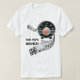 T-Shirt avec une radio de style Art déco extraordinaire en rouge, noir et argent qui écrase des notes musicales sur un personnel tourbillonnant et sous-titré "(Votre nom ou Station préférée) Rocks !"