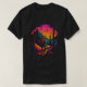 Un décor de paysage de montagne coloré de style rétro cool avec un randonneur au coucher du soleil.