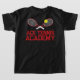 Raquette de tennis rouge vif et ballon avec votre propre nom sous graphique sur le devant et votre club ou d'autres mots sur l'envers ou personnalisez avec votre propre dicton. Art graphique et design original par Sarah Trett pour www.mylittleeden.com sur Zazzle.