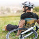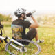 coucher de soleil tableau d'un vélo dans le désert entouré de cactus