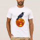 Un corbeau noir est assis sur un Jack-o-Lantern sculpté sur cette jupe d'Halloween amusante.