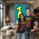 Cet alien de néon rouge rayonnant avec des antennes ludiques et un large sourire rose poutres à l'énergie décalée. Entouré de symboles abstraits colorés sur le noir, il s’agit d’un design pop art branché, parfait pour les festivals, les vêtements de rue ou toute personne qui aime les t-shirts à déclaration audacieuse et joyeuse.