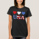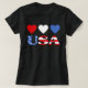 J'adore les USA ! Mon orgueil pour l'Amérique m'a inspiré à créer ce simple coeurs rouge, blanc et bleu et le drapeau américain. C'est parfait pour fêter l'anniversaire de l'Amérique le 4 juillet ou montrer votre fierté à tout moment ! Il est affiché ici sur un t-shirt féminin foncé. Plus de couleurs et de styles de chemise disponibles et vous pouvez personnaliser ce design avec votre propre message si vous voulez.