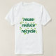 Ce graphisme recyclé, réutilisé et réduit est un moyen parfait de diffuser le message du recyclage tout en montrant votre sens du style quelle meilleure façon de sortir le message qu'en le portant sur votre poitrine? Ce qui signifie que vous faites votre part pour aider à sauver la planète Ce design est le cadeau parfait pour le membre de la famille ou meilleur ami écologique. Cette oeuvre d'art unique s'inscrit également à temps pour la Journée mondiale de l'environnement du 22 avril et l'événement de la Journée internationale de la planète célébré dans le monde entier pour promettre un soutien à la protection de l'environnement. Si vous aimez cette oeuvre d'art, découvrez des créations similaires dans le magasin Omitay.