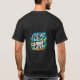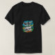 Le design du t-shirt comporte l'expression "Grind Now, Shine Later" en typographie audacieuse et multicolore. Les lettres sont fixées contre un arrière - plan dynamique de formes et de motifs tourbillonnants, abstraits, créant un visuel dynamique et énergique. La conception d'ensemble transmet un message de persévérance, de travail acharné et de récompense éventuelle du succès.