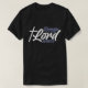 Ce t-shirt noir présente un script blanc courant au fond. Au-dessus, une croix blanche stylisée forme le "L" dans le grand mot "Lord", qui est superposé avec "Rejoice" dans un plus petit script et "TOUJOURS" dans une police simple. "IN THE" est écrit au-dessus de "Lord". Cette conception offre un message religieux de joie. T