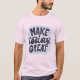 Un tee-shirt classique avec l'expression "Make Today Great" dans une police audacieuse qui attire l'attention sur la poitrine. Il s'agit d'une conception simple qui permet au message de se démarquer.