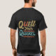 Un design de t-shirt dynamique avec le texte "Quell Your Quakes" dans un style de graffiti multicolore et audacieux.
