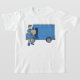 Un livreur d'express qui livre une boîte. Ce design semble vraiment efficace sur ce T-shirt garçon