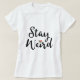 Pour les plus curieux, curieux et plus encore, express votre singularité avec un t-shirt avec typographie de script de brosse moderne et un coeur d'aquarelle abstrait qui parcourt le "i" dans "Stay Weird".