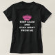 Le rose et le noir de la femme amusante gardent un t-shirt calme. Ce rose et noir gardent calme et rester loin de moi t-shirt a une couronne rose et vous pouvez changer le style chemise, couleur, style de texte et couleur en choisissant simplement le bouton "Customiser!". Veuillez noter que toutes les chemises, autocollants, cartes et invitations, etc, les dessins que vous trouverez sur Zazzle sont des graphiques imprimés sans bijoux, arcs, surélevés, gaufrés, ou des pièces ou pièces ajoutées.