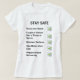 Restez en sécurité avec le T-shirt Social Distancing avec des coches vertes pour vous rappeler à vous et aux autres. Est-ce que les mots "se laver les mains", "tousser ou éternuer dans un tissu ou une manche", "désinfecter les surfaces", "rester à la maison quand il est malade", "pratiquer la distanciation sociale"?