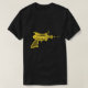 Rétro arme à feu de rayon en jaune sur la chemise foncée.