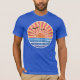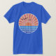 Le graphique coloré de plage avec un regard vintage comporte l'illustration affligée du coucher du soleil rouge et jaune au-dessus des eaux d'océan et des silhouettes bleues de mouette volant au-dessus. Grand cadeau pour l'amant de plage.