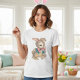 Le T-shirt présente l'illustration vintage d'un adorable lapin habillé d'une veste et d'une cravate d'arc rose.