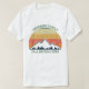 T-shirts de réunion familiale sur mesure pour un rassemblement d'automne avec cousins, tantes, oncles et grands-parents. Commandez des tee - shirts assortis pour l'ensemble de l'équipage avec votre nom de famille et année en vert autour de la belle image coucher de soleil d'automne sur les montagnes et les arbres. Grand chemises de camping de groupe personnalisées pour tous.