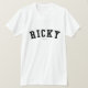 Ricky ! Votre nom est-il Ricky ? Ou avez-vous un mari, un ami, un membre de la famille masculin ou un mâle Ricky appelé par ami ? Si oui, cette chemise de "bannière" est exactement le cadeau que vous recherchez ! Les caractéristiques de conception "Ricky" dans le lettrage noir arqué à travers le coffre dans la police classique d'université.