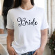 Design moderne mignon pour la future mariée. Le mot tourbillonnant mariée a un cœur et sera sûrement remarqué lors d'une soirée d'enterrement de vie de jeune fille. Peut être porté pour le dîner de répétition, et avec votre cortège de mariage.