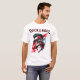 T-shirt cool moderne Rock n Roll avec un crâne rockstar stylisé couleur rouge, blanc et bleu et portant une coupe de cheveux mohawk