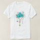 Clé d'or antique aux roses turquoise tendance décorée de feuilles d'or blanc et de perles rose et bleu. Couleur tendance. Rose turquoise. Blanc doré. Tiffany bleu.