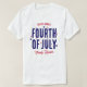 Maintenant, vous pouvez commémorer le 4 juillet de cette année en style avec un t-shirt personnalisé ! Montrez votre esprit patriotique avec le "Quart juillet" écrit en caractères gras, accompagné de charmantes étoiles rouges et bleues. Customisez la chemise en ajoutant votre nom de famille ou "Réunion familiale" — parfait pour votre réunion d'été avec ceux que vous aimez. Célébrez comme jamais auparavant le Jour de l'Indépendance avec ce t-shirt en édition spéciale !