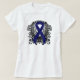 Ruban bleu foncé avec ailes et motif en fibre. Le ruban bleu foncé / marine représente Ankyloser Spondylitis Sensibilisation, Apraxie Sensibilisation, ARDS (syndrome de détresse respiratoire aigu) Sensibilisation, Blessures au plexus brésilien, Criminalité Sensibilisation aux droits des victimes, Dysautonomie Sensibilisation, Sensibilisation à l'éducation, Epstein-Barr Sensibilisation au virus, Erb's Palsy Sensibilisation aux polyposiums familiaux, Sensibilisation à la liberté d'expression, Hurricane Sensibilisation à l'ouragan Katrina, à l'Ichthyose, à l'hystiocytose des cellules de Langerhans, à la perte de la sensibilisation à l'obligation policière, au syndrome des jambes sans repos, à la sensibilisation à la musique, aux Ados contre le tabagisme, à la sensibilisation aux myélites transversales, à la sensibilisation aux accidents de l'eau, à la qualité de l'eau et à la salubrité de l'eau. Et Mars est aussi la sensibilisation au syndrome de fatigue chronique, la sensibilisation au cancer du côlon, la sensibilisation au cancer colorectal, la sensibilisation au cancer rectal et le Mois de sensibilisation au syndrome du côlon court. Le mois d'avril est le Mois de sensibilisation à la prévention de la violence envers les enfants. Mai est la sensibilisation à l'arthrite, la sensibilisation à la colite, la sensibilisation à la maladie de Crohn, la sensibilisation au syndrome de Guillian Barre, la sensibilisation à la maladie de Huntington, et le Mois de la sensibilisation aux maladies infectieuses émergentes et aux maladies infectieuses émergentes. Le mois d'août est Noyé et le mois de sensibilisation au syndrome de Steven Johnson. Septembre est la sensibilisation à l'alopécie, à la dystonie, à l'hystiocytose, à la leucodystrophie, à la myosite et au Mois de la sensibilisation au syndrome de Reye. Octobre est Interstitiel Cystitis Sensibilisation, et le Mois de Sensibilisation aux Droits des Victimes.