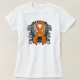 Ruban orange avec ailes d'ange et motif de filigree. Le ruban orange signifie Sensibilisation à la sclérose en plaques en mars, Sensibilisation à l'automutilation en mars, Sensibilisation au mélanome en mai, Sensibilisation au cancer de la peau en mai, Sensibilisation à la leucémie en septembre, Sensibilisation à la diversité culturelle en octobre, Sensibilisation à la faim en octobre, Sensibilisation au lupus en octobre, RSD/CRPS en novembre, Sensibilisation aux chats féraux agents orange, Sensibilisation à la sécurité à la motocyclette, Sensibilisation à la sécurité à la sécurité à la motocyclique, à la motocyclette, à la sécurité à la sécurité à la sécurité et à la tolérance raciale.