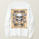 Ce flyer de concert rock and roll en contraste élevé et en détresse est conçu pour capturer l'esprit brut et rebelle d'un spectacle rock hardcore. Au centre du design se trouve un crâne et des os croisés gras et dessinés à la main avec une esthétique usée et inspirée du tatouage, parfait pour attirer une foule qui vit pour le bord. L'oeil vide du crâne s'allume d'une teinte orange-rouge vif, ajoutant une atmosphère intense, presque menaçante. Autour du crâne est orné de défilés et d'ornements d'inspiration gothique, avec des détails métalliques d'encre argentée qui attirent la lumière et ajoutent une touche de luxe rock-and-roll. Le fond est un beige chaud et défraîchi, faisant apparaître le design sur une variété de couleurs de T-shirts, tandis que la police noire sans-serif, audacieuse, listant le nom du groupe et les dates de tournée, est mise en page rugueuse, évoquant l'énergie indomptée de l'expérience de concert. Ce prospectus est plus qu'une simple invitation, c'est une déclaration de rébellion et de rock.