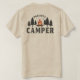Un art de camping rustique stylisé avec un feu de camp, des pins, des étoiles et un croissant de lune. Parfait pour les amateurs de plein air et les campeurs.