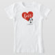 Un mignon chiot devant un grand coeur qui dit LOVE fait une adorable chemise de la Saint Valentin.