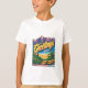 Le design des t-shirts présente une image nostalgique et inspirée du voyage : un design de carte postale rétro avec des montagnes ou des plages pittoresques, avec l'expression "Salut de..." en gras et vintage. Ce design évoque un sentiment de nostalgie et de dépaysement, séduisant ceux qui apprécient l'esthétique vintage et le voyage.