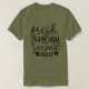 Ce t-shirt vert olive présente le texte "frais SARCASM servi chaque jour" dans une police noire ludique. Les mots "frais" et "servi" sont dans un script fluide, tandis que "SARCASM" et "DAILY" sont dans un style plus audacieux, légèrement fantaisiste. Les petites étoiles et les motifs floraux ajoutent au ton léger mais sarcastique du message.