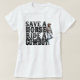 T-Shirt Side a Horse Ride a Cowboy. © Tees & Sweats chez Zazzle. Ce tee-shirt comporte un message qui dit Sauver un cheval monter un cowboy avec une image d'un cowboy sur le côté.