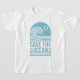 Save the ocean protection conservation world oceans day beach clean up activist quotes gift boho retro blue aesthetic girls kids clothing outfit white shirt tee.