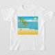 Vue pittoresque sur une plage de palmiers au soleil éclatant. Ce design semble vraiment efficace sur ce T-shirt garçon