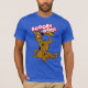 Découvrez Scooby-Doo assis avec un grand sourire, tenant une tranche de pizza farcie en croûte.