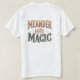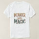 Le design de "Meander in Magic" présente la phrase rendue dans une typographie fantaisiste et multicolore qui évoque un sens de l'émerveillement et de l'enchantement. Les lettres sont stylisées pour ressembler à un script ludique et mousseux, ajoutant à l'atmosphère légère et magique.