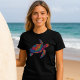 This swimming sea turtle in a colorful retro psychedelic art style has the vintage groovy vibes of the 60's and 70's.