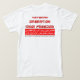 Une grande pièce en t pour quelqu'un qui a servi en Irak. En arabe, il indique, "reculez 100 mètres ou vous serez tir." Ceci est généralement écrit sur des panneaux d'avertissement imprimés en anglais et l'arabe.
