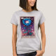 T-shirt décontracté pour femmes avec la fleur du mois de la naissance de septembre, le Morning Glory, avec "Septembre : et "Amour, affection, mortalité" sur une carte de tarot illustrée.