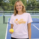 This cute tee is perfect for the pickleball court, and will get many compliments around town. "Serving Up Sunshine" features a pastel pink and yellow paddle with an orange pickleball. The cheerful orange motivational text is completed with a rising sun. Show off your love for pickleball with this sunny feel good shirt. • Vivid printing is recommended for most non-white garments.