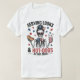 Ce t-shirt blanc est habillé d'un squelette sur le thème rouge, blanc et bleu. Le squelette est doté d'une coiffure avec un arc assorti, des lunettes de soleil et une cravate. Il tient un hot dog dans une main et un milk-shake avec des étoiles et des rayures dans l'autre. Le texte "SERVING LOOKS & HOT-DOGS -IN THE ORDER-" entoure le squelette, avec les étoiles rouges et bleues.