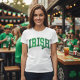 Ce t-shirt amusant St. Patrick's Day comprend le mot 'IRISH' dans une police rétro incurvée aux couleurs claires et vert foncé avec un shamrock coordonnateur.