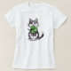 Un chat noir et blanc tenant a trois-a poussé des feuilles shamrock dans sa bouche, pour le jour de St Patrick, ou juste pour l'amusement !