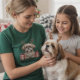 "This irresistibly cute illustration features a portrait of an adorable Shih Tzu dog with its characteristic long, fluffy fur and expressive eyes. The dog is wearing festive reindeer antlers adorned with small holiday ornaments. Two beautifully wrapped Christmas presents with bold red ribbons sit on either side. This high-quality graphic is ideal for personalized gifts for Shih Tzu owners, holiday apparel, Christmas cards, ornaments, or any product celebrating this popular toy breed."