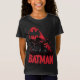 Ce graphique présente une représentation dramatique de Batman, projetée sur un fond rouge et sombre qui fait écho à l'atmosphère périlleuse de Gotham. L’oeuvre est centrée sur la silhouette de Batman, émergeant de l’obscurité avec une position imposante, soulignant son rôle de gardien de la nuit. Le signal de chauve-souris plane dans le ciel, appelant le Chevalier Noir à sauver Gotham, la ville qu'il promet de protéger. La pluie recouvre l'oeuvre, ajoutant une couche de réalisme grincheux et renforçant le sentiment d'une bataille interminable contre le crime. Les chauves-souris rouges flottent de l'emblème, suggérant la menace omniprésente qui envahit Gotham. Cette oeuvre illustre l’essence de la veillée permanente de Batman, marquée par le sacrifice et le courage implacable.
