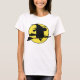 Une silhouette de sorcière à halloween sur un balai contre le soleil. Ce design semble vraiment efficace sur ce T-shirt féminin