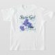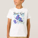 Notre Skater Girl design T-shirts, tasses, sacs, cartes, coussins, horloge murale, gardisakes, sweat - shirts à capuche et autres articles de patinage comporte une paire de patins et mitaines bleus et lavande sur une chaîne entourée de nombreux flocons de neige et texte qui lit Patineuse fille!