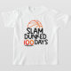Ce design moderne présente le texte "Slam dunked 100 days" en typographie noir et orange accentué d'un basket-ball. #100daysofschool #basketball #slamdunked #school #sports #game #fun #typography #modern #chic stylish #élégant #style #tendance #tendance #extérieur #garçons #boystshirts #vêtements #basketball #enfants #cadeaux #giftsforboys