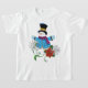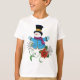 Snowman avec un chapeau haut et foulard avec poinsettia et flocons de neige.